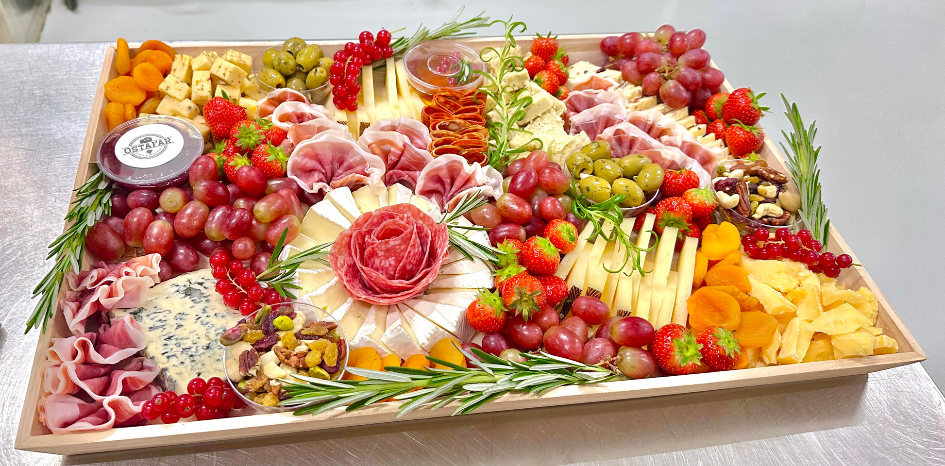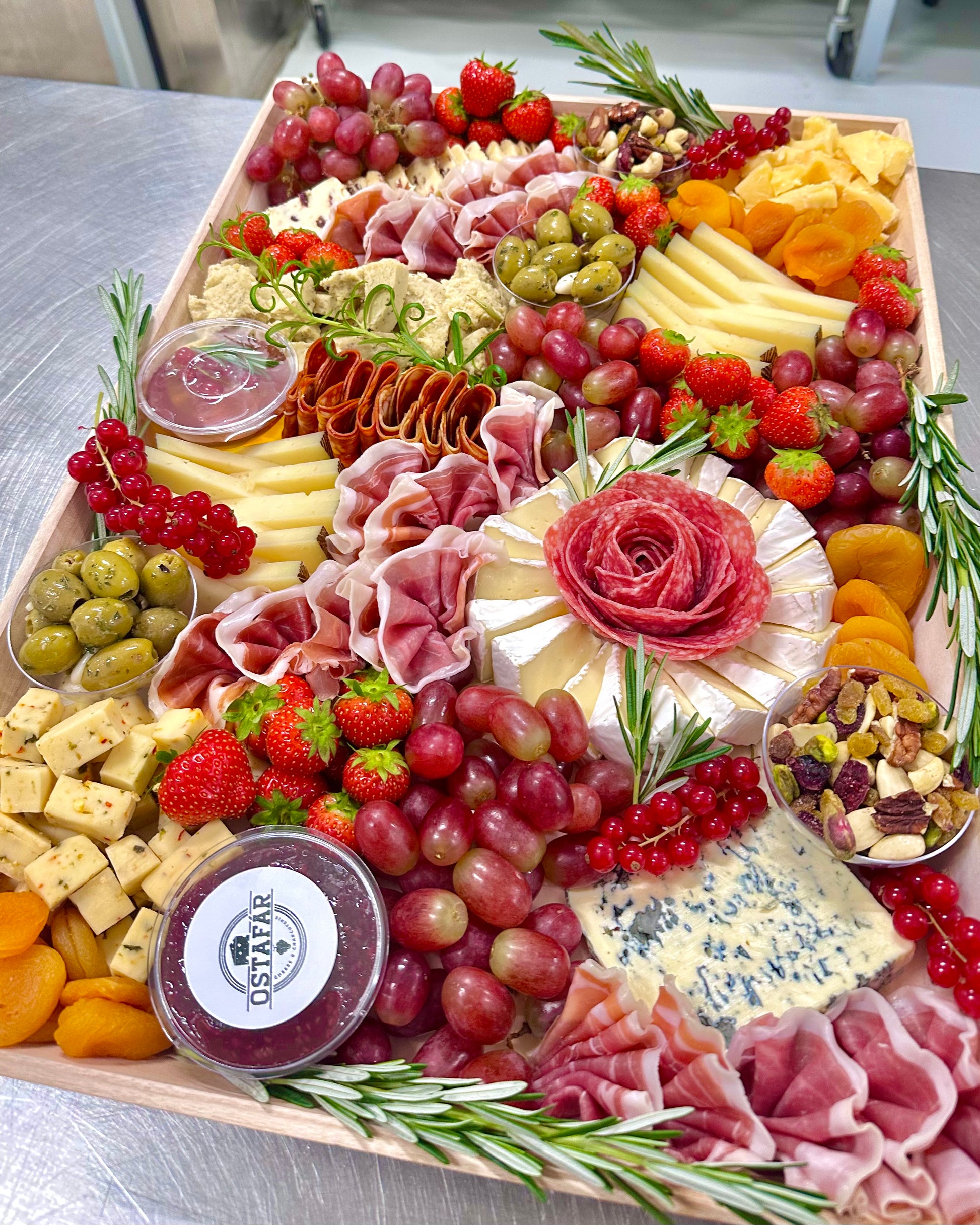 Á plattanum eru úrvals ostar ásamt gómsætu meðlæti fyrir 15-20 manns.